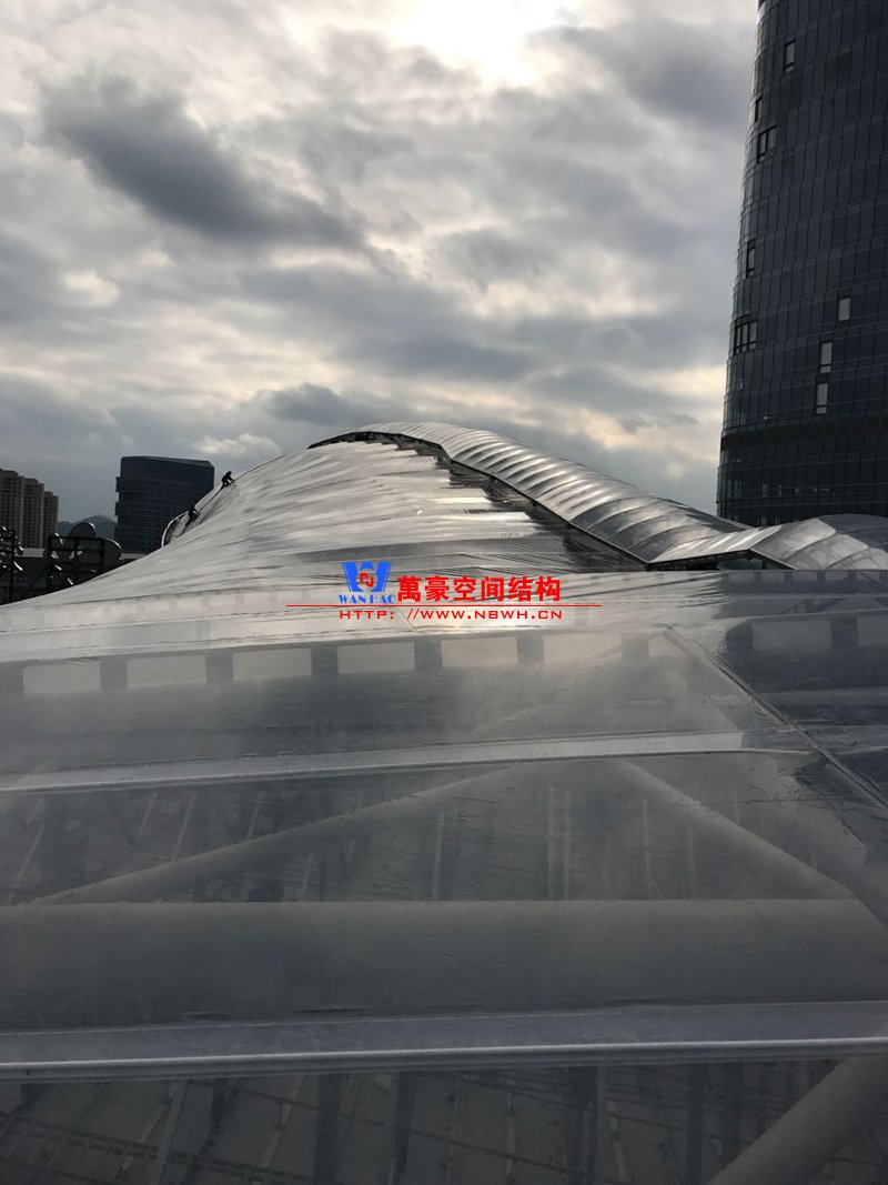遵義高鐵新城天幕膜結(jié)構(gòu)工程用鋼量500噸,膜展開面積8000平米。