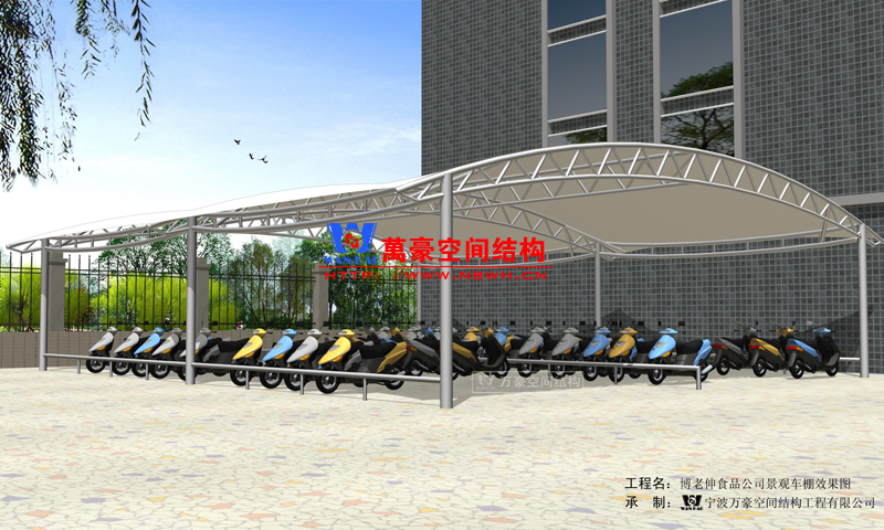 博老申食品公司膜結(jié)構(gòu)自行車棚效果圖