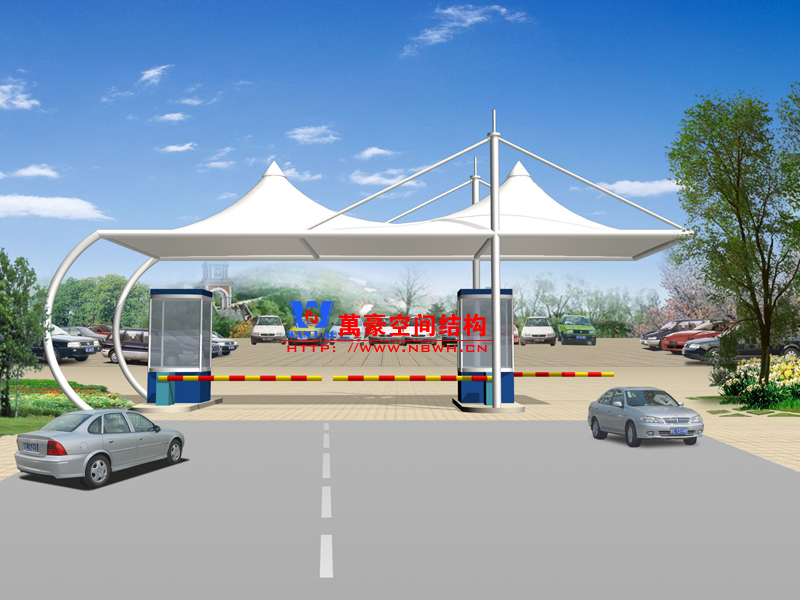 什么是出入口膜結構?出入口膜結構一般指的是應用了張拉膜結構的出入口建筑,比如小區崗亭、車庫出入口、收費站等。出入口膜結構體系由膜面、邊索、脊索、谷索、支承結構、錨固系統,以及各部分之間的連接節點等組成。以上是出入口膜結構工程的設計效果圖,改天萬豪再給大家展示下實際案例。