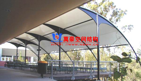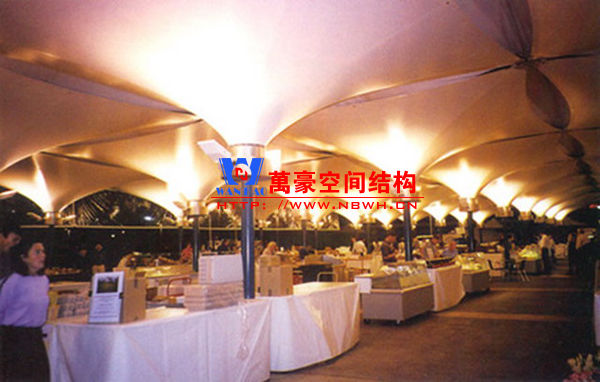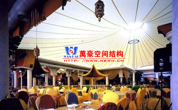 餐廳膜結(jié)構(gòu)建筑主要包括戶外餐廳膜結(jié)構(gòu)和室內(nèi)餐廳膜結(jié)構(gòu)。戶外餐廳膜結(jié)構(gòu)形式多樣,有的是整個(gè)覆蓋在餐廳之上的膜結(jié)構(gòu),有的是覆蓋某片固定區(qū)域做為用餐區(qū)的膜結(jié)構(gòu),還有的采取一桌一頂棚的形式存在,主要功能是遮陽擋雨作用。室內(nèi)餐廳膜結(jié)構(gòu)建筑主要分為頂棚膜結(jié)構(gòu)和裝飾膜結(jié)構(gòu)兩種,主要起到裝飾作用,增加環(huán)境的美感。