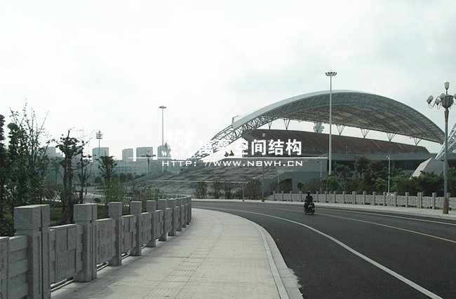 嘉興體育館位于嘉興市中環(huán)南路南側(cè),昌盛路西側(cè),總建筑面積約4.81公頃,其中膜結(jié)構(gòu)看臺(tái)建筑總面積約12580平方米,看臺(tái)總體結(jié)構(gòu)為骨架與拉索混合支撐式膜結(jié)構(gòu)。