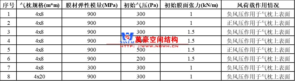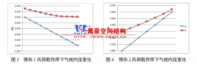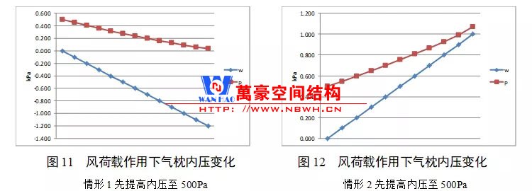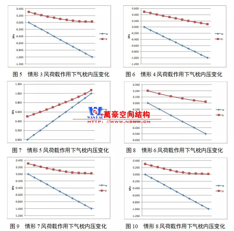 根據(jù)上一章節(jié)中列出的8個(gè)情形,在本章給出了在不同風(fēng)荷載值下的氣枕內(nèi)壓值,以圖表的形式: