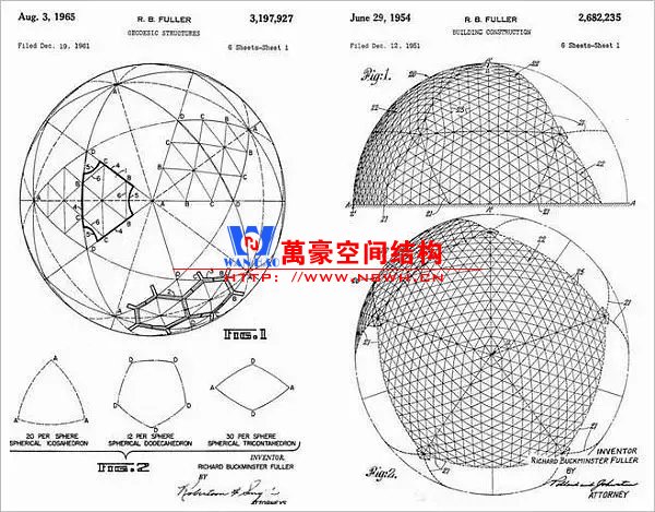 原理看不懂沒關系,直接看案例。1967年富勒就將這一設計思想應用于蒙特利爾國際博覽會美國館的設計上,場館是一3/4球形建筑,直徑為76米,外表面覆蓋著透明的亞克力板。這座展館成為美國先進科技的象征,當年可謂萬眾矚目。