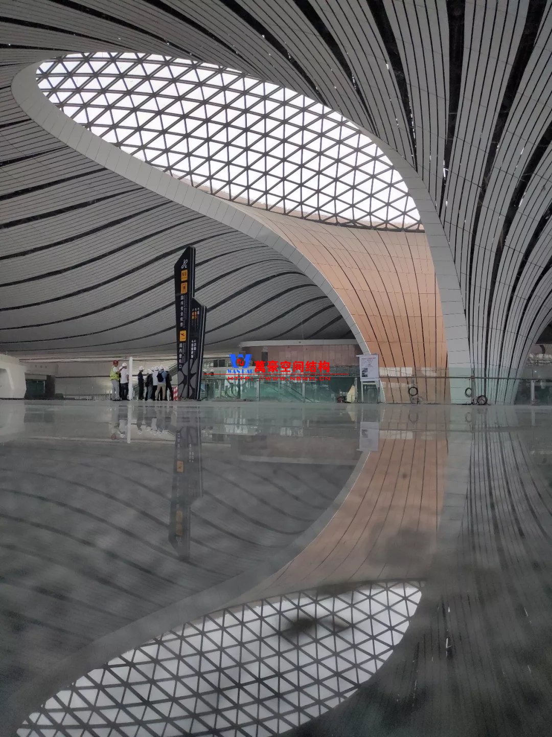 鋁合金結構網殼經典案例也有很多,其中近兩年被大家熟知的有牛首山大小穹頂和北京新機場天窗。鋁構件的尺度都很小,從通透性上來說,效果比普通鋼網殼要好。對于本項目要填滿的圓圈,也不失為一種選擇。