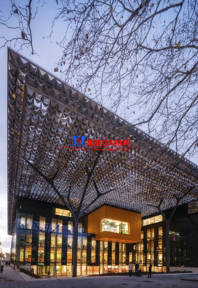 傘狀穹頂結構充分發揮了網殼的形抗優勢,最小桿件截面僅100x100mm,營造出建筑師非常期待的精致輕盈效果。