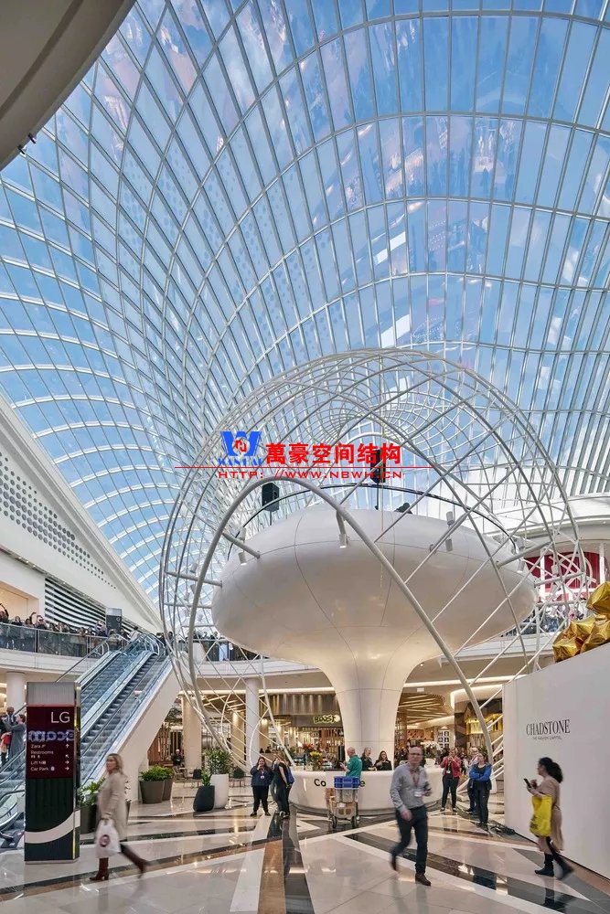 裙房之間的天幕為樹形柱支承