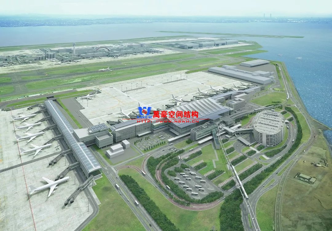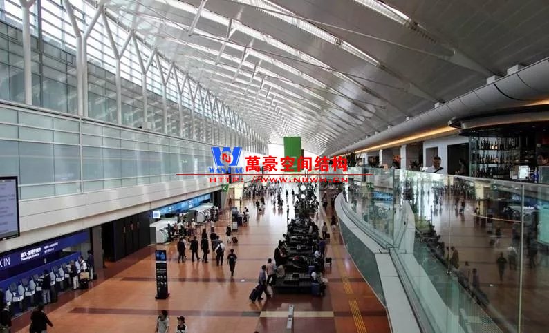 除了實腹鋼梁,我們還可以選擇更加輕盈的張弦梁,其主要表現即在張弦梁的造型以及索節點,建筑效果走的路線也多為精細風。其中經典案例有浦東國際機場T1航站樓和東京羽田機場,歷經多年也不顯得過時。