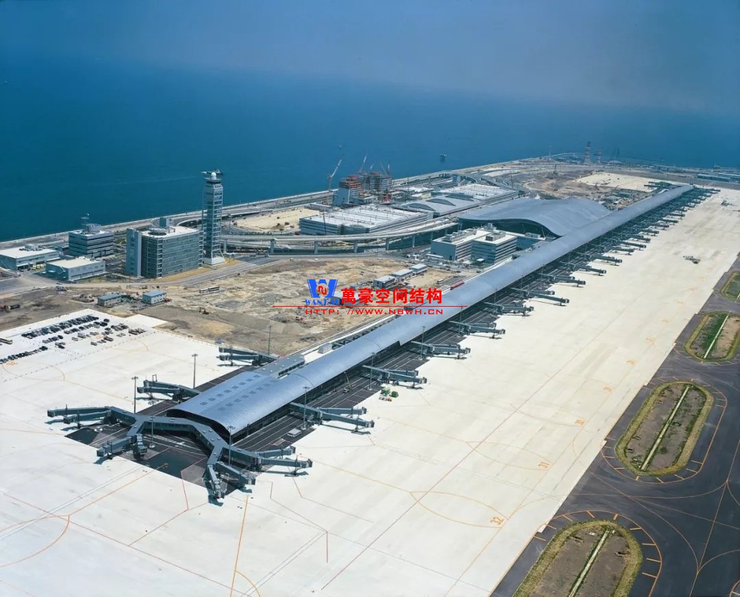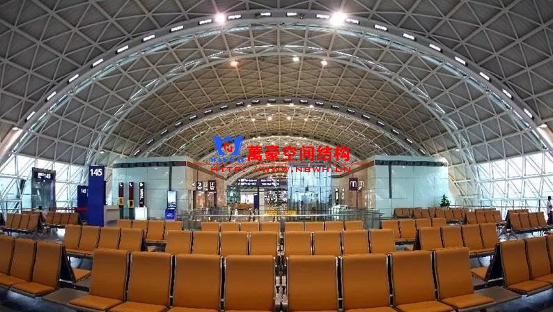 大阪關西機場則采用弧形鋼梁+索的結構體系,有效減小了鋼梁尺寸,同時由于沒有天窗光線作用,鋼索并不明顯。可能是由于日本是地震多發地區,外露的支撐構件比較多略顯雜亂。