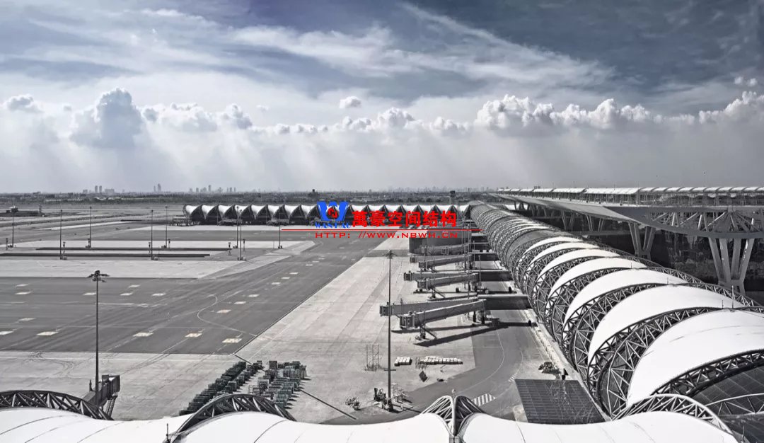 隨著經濟條件的提升和建造技術的進步,建筑師開始追求大跨度與建筑表現,因此鋼結構成為了指廊屋面的首選材料。對于二三十米的跨度,三根柱或兩根柱都可以實現。