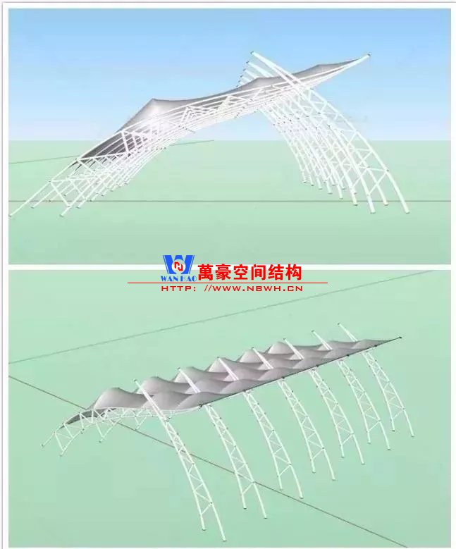 膜結構又叫張拉膜結構(Tensioned Membrane structure),膜結構建筑是21世紀最具代表性與充滿前途的建筑形式。打破了純直線建筑風格的模式,以其獨有的優美曲面造型,簡潔、明快、剛與柔、力與美的完美組合,呈現給人以耳目一新的感覺,同時給建筑設計師提供了更大的想象和創造空間。