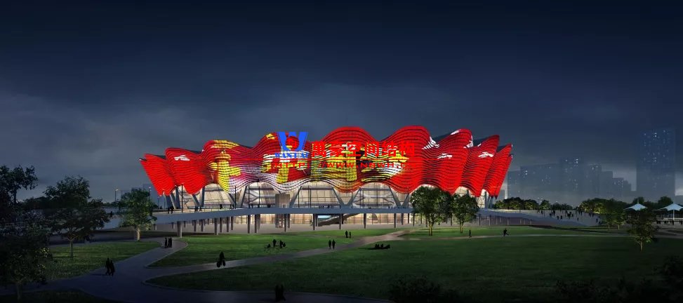 體育場夜景泛光設計突出表現建筑形態石榴花綻放的姿態和絲綢舞動的韻律,通過靈動的曲面穿孔幕墻,將燈光與之充分結合,立面利用穿孔板幕墻結構安裝定制化的LED點光源燈具,屋面結合陽光板的透光特點及曲面金屬幕墻,形成像素媒體建筑表皮,展現豐富的動態效果;局部立面補充投光燈具表現建筑結構的起伏轉折,展現建筑形體美;燈光效果分為不同模式場景組合開啟,通過燈光打造出宏大激蕩的動態多模式夜景效果,讓建筑動起來,讓主場會說話。
