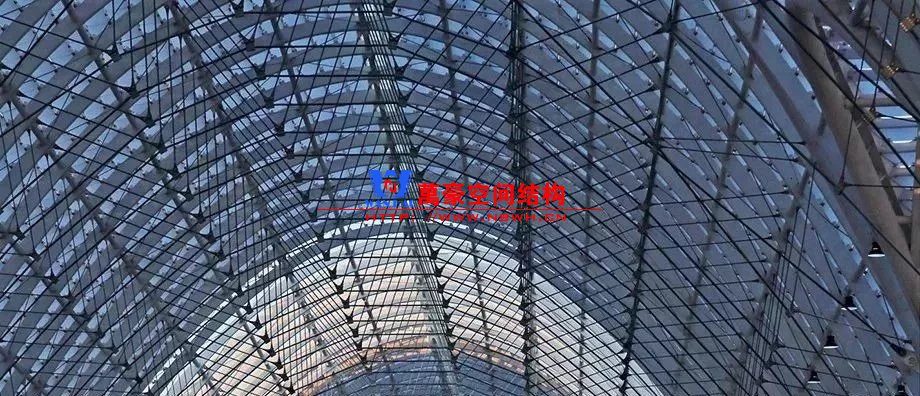 建筑內在的空間結構形成了外部形態的美學韻律和視覺沖擊力,使建筑形象真實而動人。包括展廊與展廳兩部分,以中央十字展廊為功能組織核心,南北各布置6個、共12個獨立展廳單元(尺寸74.4m×136.4m,采用變標高的空間桁架鋼結構)。展廊平面呈十字型布置,東西向長507m,南北向長287m,主拱和次拱方向分別設置兩道溫度縫,最高點標高為35.0m。