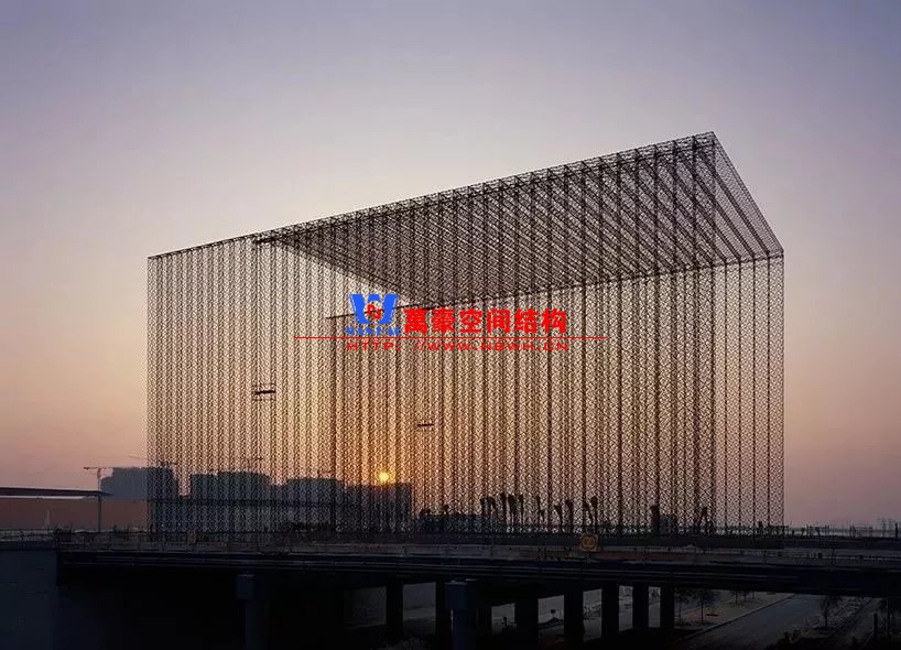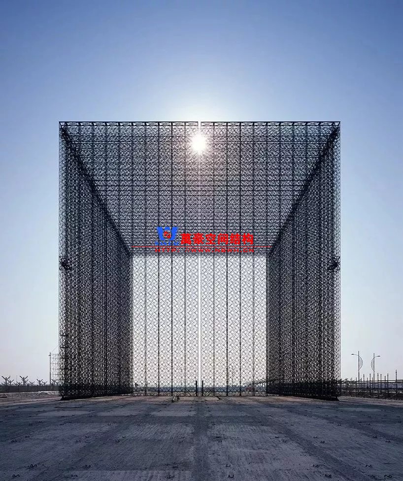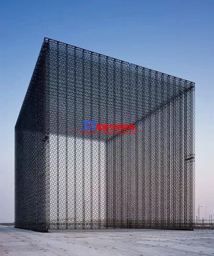 在2020迪拜世博會入口大門的設計上,Asif Khan將傳統窗花,一種該地區廣泛使用的用于調節陽光和空氣流通的精細設計,進行了未來主義的適用。黑色蕾絲形式的立方體同時創造出神秘的黑暗空隙,湊近看時,會滲透進更多的光線。“編織物”在藍天下描繪了一幅圖案鮮明的壁畫,同時也在場地上投射出鏡像的陰影,代表著一種藝術化的,建筑形式的,本土化的歡迎客人的方式。