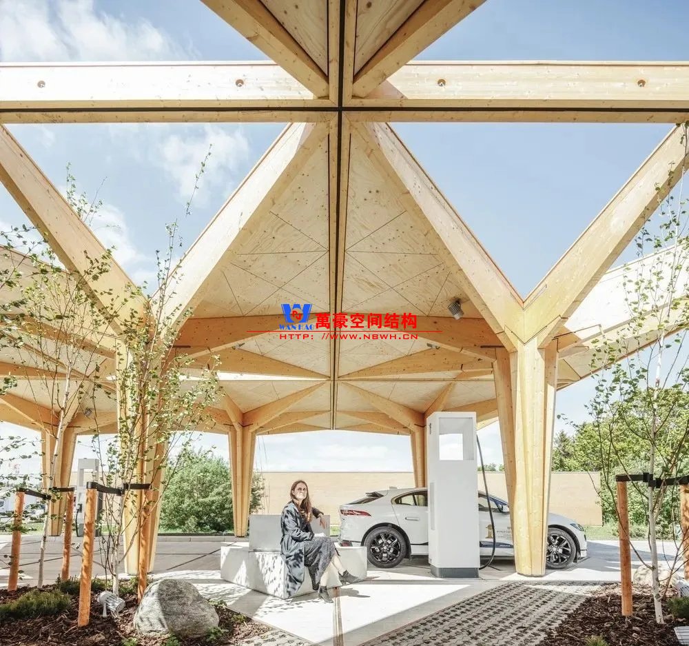 由于模塊化的設計理念,車站是可伸縮的,一顆 “樹” 可以根據需要輕松地變成一個完整的 “樹林”。充電站由有認證的木材和混凝土建造,頂部是太陽能電池板,周圍是與丹麥自然保護協會合作選擇的樹木、草和其他植物,目的是加強車站周圍的生物多樣性。 建筑的所有組成部分都可以被分解成可用的和可回收的材料,選擇木材作為建筑材料進一步強調了建筑的可持續設計。