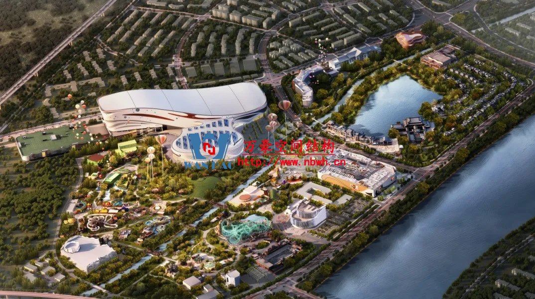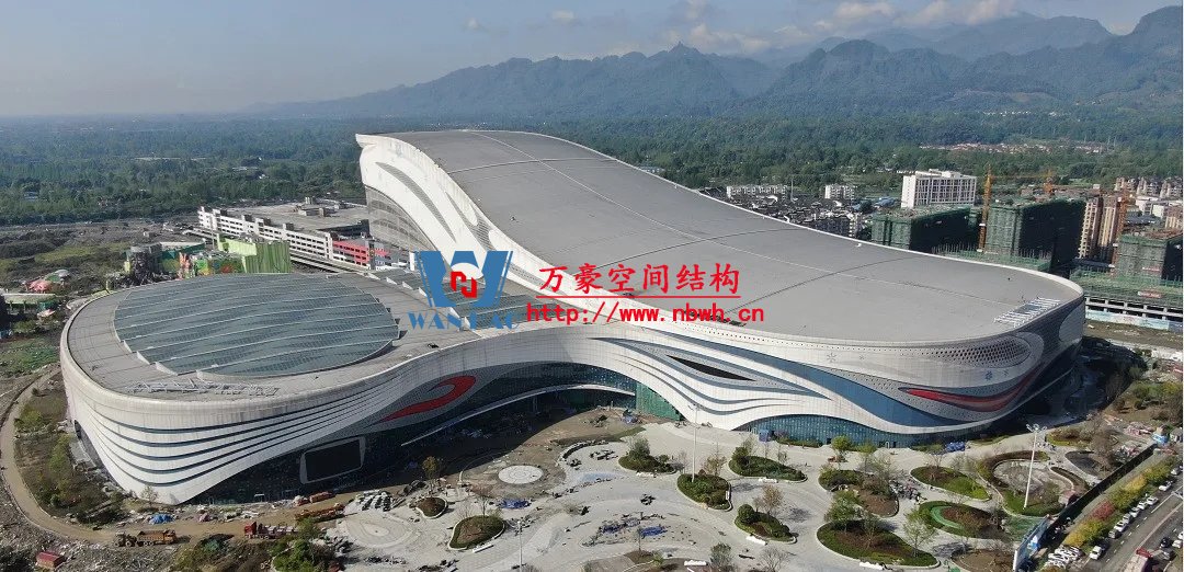 成都融創(chuàng)文旅城水雪綜合體項(xiàng)目是成都融創(chuàng)文旅城的核心主體建筑,主要由雪世界、水世界和停車樓組成,總建筑面積36.76萬平方米,水雪綜合體項(xiàng)目用鋼量約2.4萬噸。其中,雪世界最大長(zhǎng)度達(dá)428米,跨度由174米漸變至94米,地下2層、地上5層,整體結(jié)構(gòu)立面高度最低35米,最高85米,是全國(guó)最大鋼筋混凝土結(jié)構(gòu)室內(nèi)滑雪場(chǎng)。