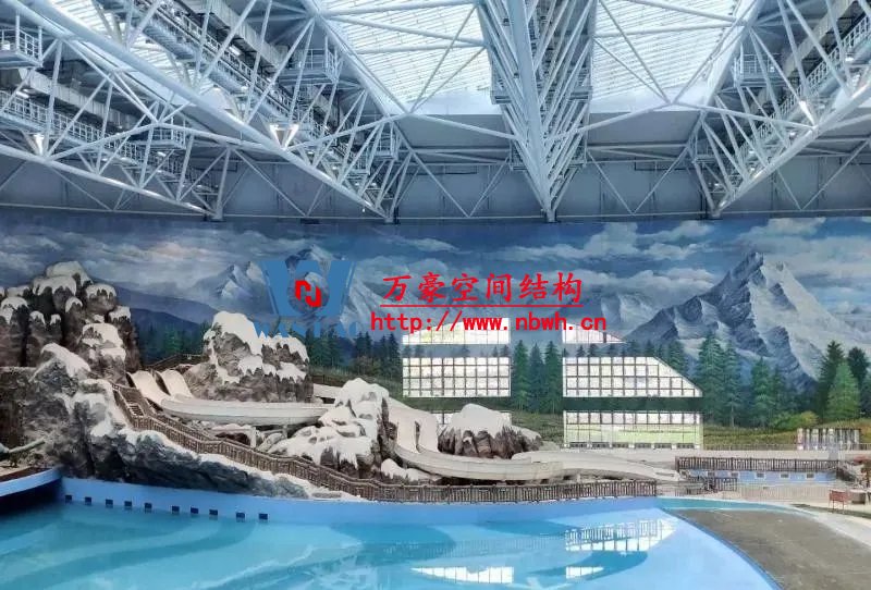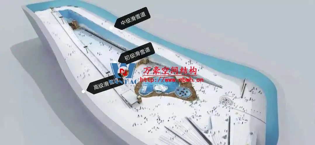 水雪綜合體用鋼量達(dá)到2.4萬噸,雪世界最長(zhǎng)滑雪道有320米,垂直落差達(dá)60米,相當(dāng)于20層樓高。