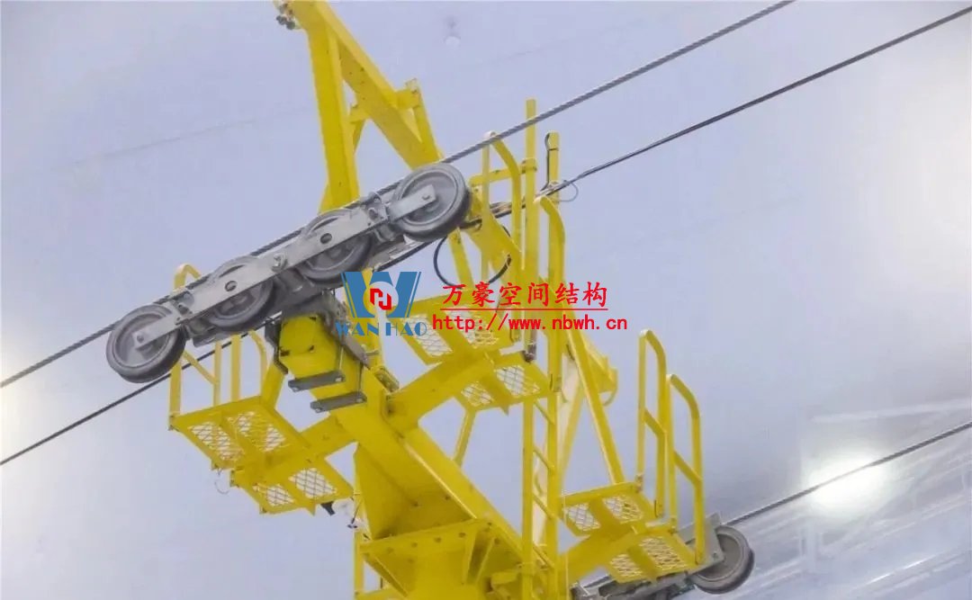 水雪綜合體高中低三區(qū)屋蓋,需要采用不同的安裝方式。低區(qū)屋蓋直接在地面拼裝,然后再吊裝就位;中區(qū)屋蓋需要采用原位拼裝+整體累計(jì)提升的方式;高區(qū)屋蓋則采用累積滑移+局部提升的方式,沿滑雪道布置兩條大滑梯,地面拼裝后再將鋼材部件順著滑梯滑上去,到達(dá)固定位置時(shí)對(duì)接安裝好完成。