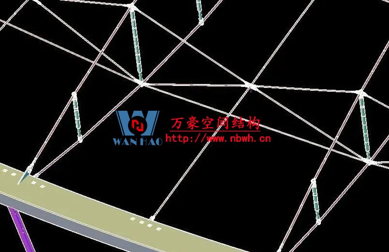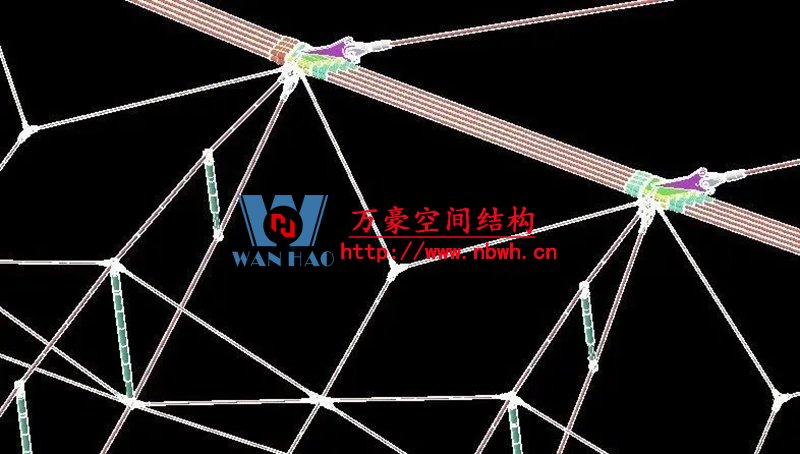 1、整個索網、環梁和吊塔形成整體受力體系,結構受力傳遞路徑復雜;