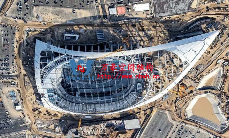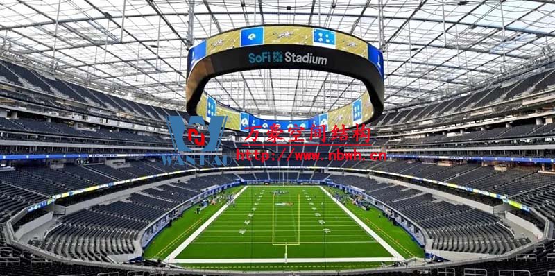 新球場(chǎng)名叫SoFi體育場(chǎng),是Social和Finance頭兩個(gè)字母的組合。球場(chǎng)和周邊設(shè)施總占地120萬平米,總耗資超過350億元。設(shè)有70240個(gè)座位, 總共能容納超過10萬人。建成后將成為NFL最大的體育場(chǎng)。