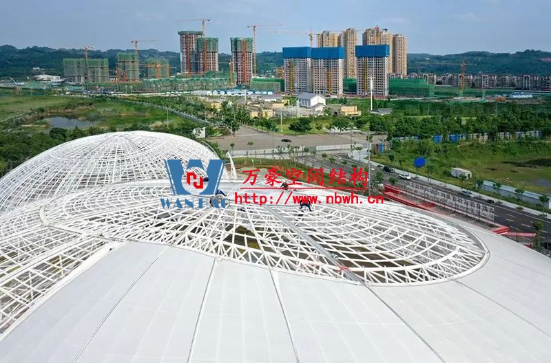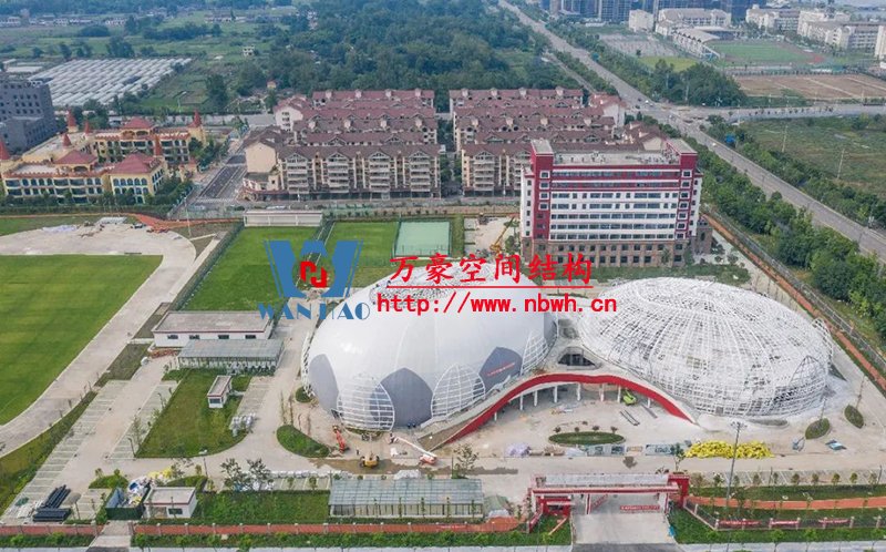 目前訓練中心主體結構已修建完成,屋蓋系統(tǒng)膜結構、室內裝潢正在同步施工。