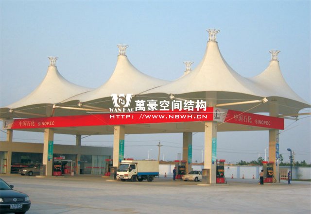 當(dāng)您乘車路過某條高速公路或城市大道時(shí),每隔一段路程就會(huì)有加油站進(jìn)入到您的眼簾,而這些建筑的大棚都是青一色的網(wǎng)架,沒有一點(diǎn)生機(jī),不妨用膜結(jié)構(gòu)來搭加油站大棚來沖擊一下您的視覺。