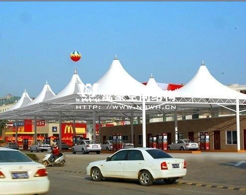 8、輕便性:由于加油站膜結(jié)構(gòu)本身重量輕,所以能絕對(duì)保證棚下人和物的安全。