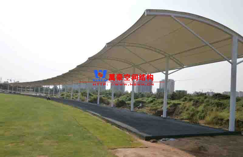 膜結(jié)構(gòu)遮陽棚工程,指的是以膜結(jié)構(gòu)為原材料制作的遮陽棚工程。膜結(jié)構(gòu)遮陽棚具有全面的外遮陽功能,其遮陽布所具有的特殊防紫外線功能,不僅使人體皮膚免受紫外線的侵襲,而且大大延長了室內(nèi)裝修和家具的使用壽命,遮陽棚有著豐富多彩的遮布花型、顏色,用戶可根據(jù)需要選擇。