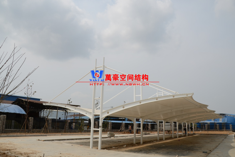 再次,膜結構車棚具有很強的透光性。我國一向提倡打造綠色環保節約型社會,膜材這個特性很好的滿足了這些需求。因為膜材漫射光的效果,膜材覆蓋的空間內將出現特別的光學效果(有明顯光感但無暗影),修建規劃中應合理使用。選用雙層膜結構車棚時,應考慮到透光率的折減。
