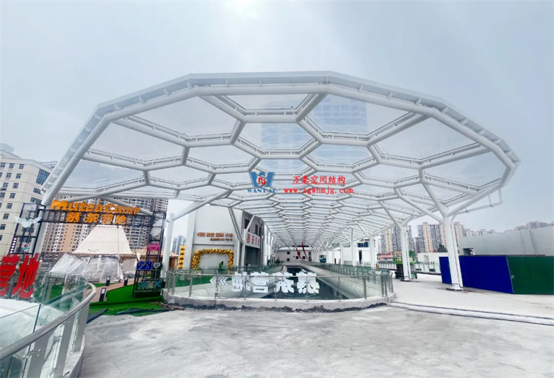 廣州茂名總匯天街商業街ETFE膜結構工程地處電白市區繁華CBD路段,毗鄰電白萬達廣場,2萬平方城市購物中心化商業街區,配套星級酒店及地下智能停車場。該項目ETFE膜結構展開面積約為2000平方米。