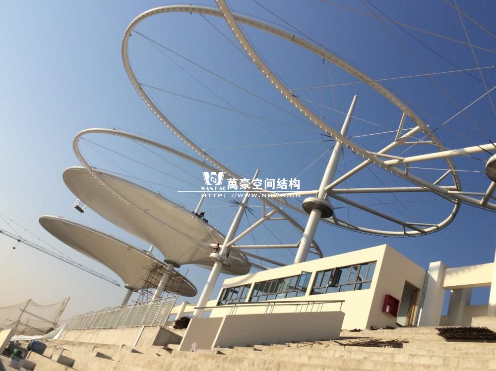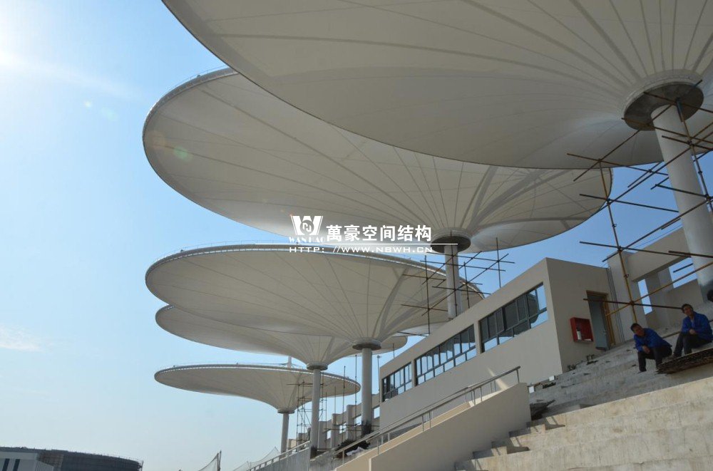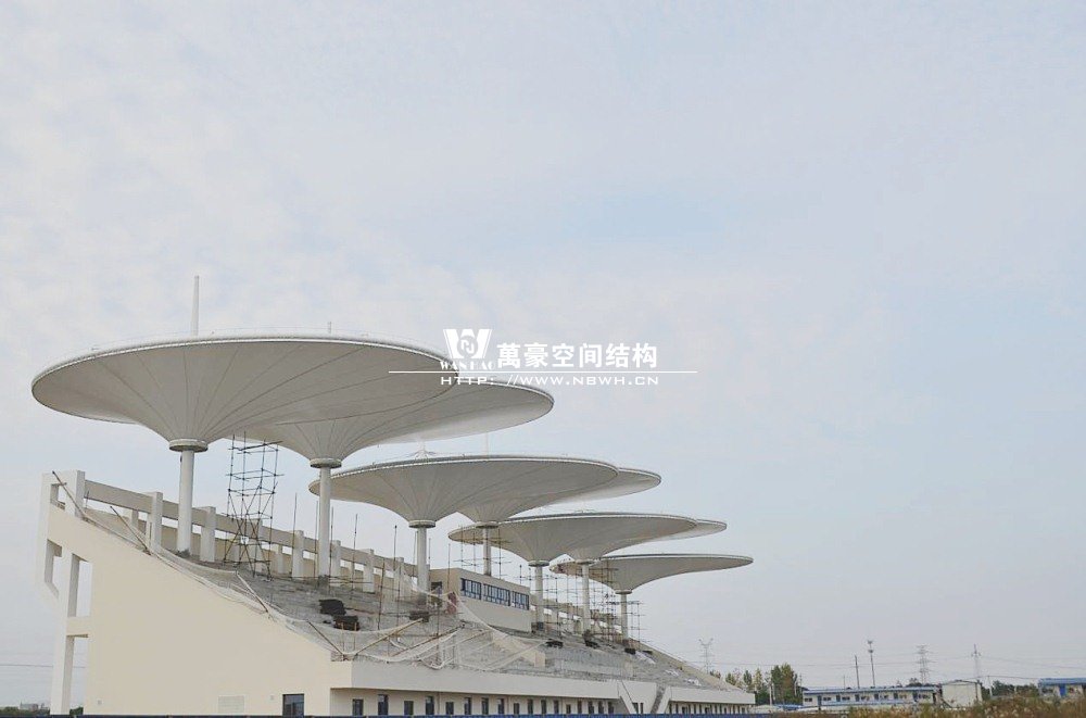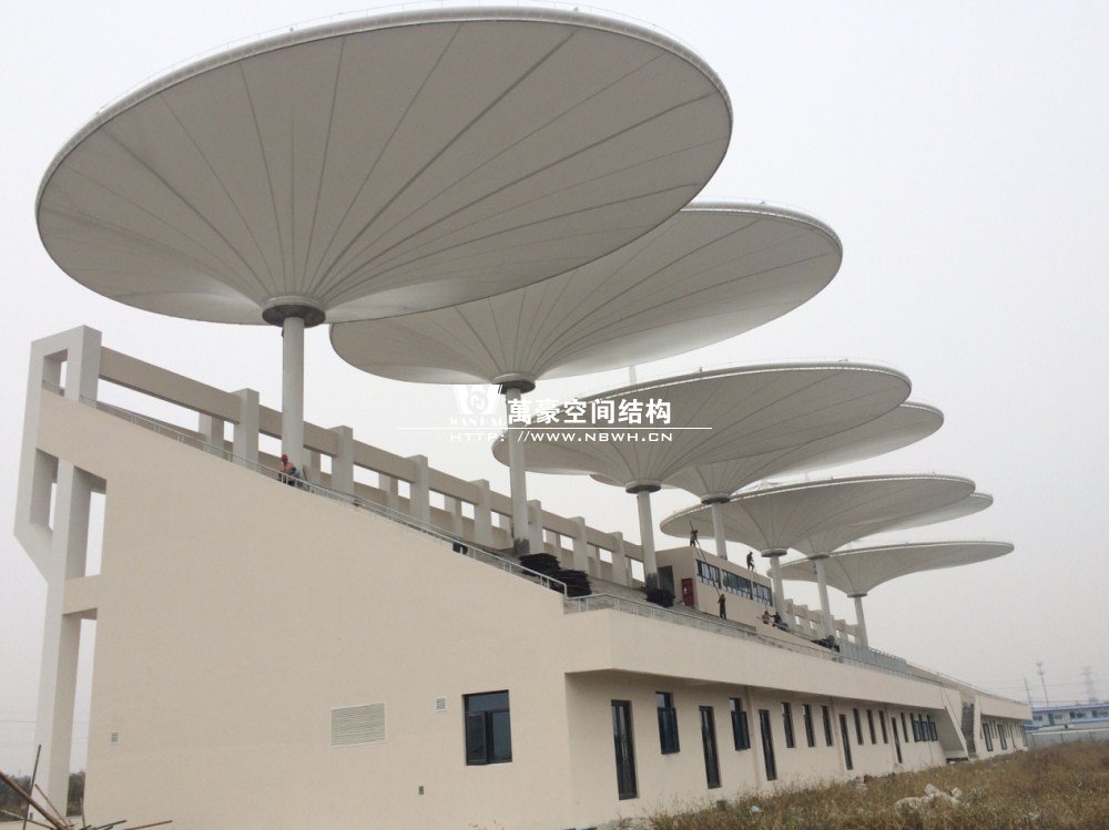 我公司有幸承接“常州大學西太湖校區體育看臺項目”。項目位于常州市延政西路與豐澤路交叉口 (常州大學西太湖校區體育場內)。該工程鋼結構用量153噸、膜展開面積3500㎡,膜材采用進口法拉利膜材。