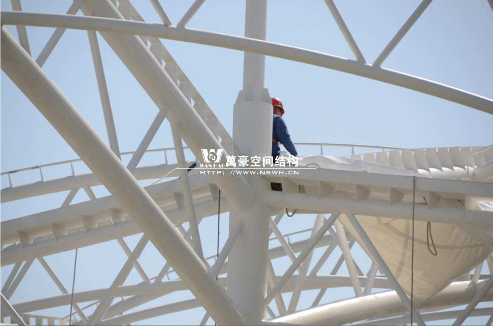 鄞州網球中心膜結構遮陽棚工程鋼結構已完成并經初步驗收