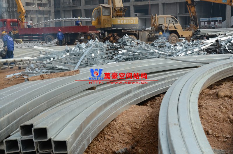 青島紅島國際會議中心膜結構項目目前已進入現場火熱拼裝及吊裝階段。本項目用鋼量大,施工節點多且復雜。