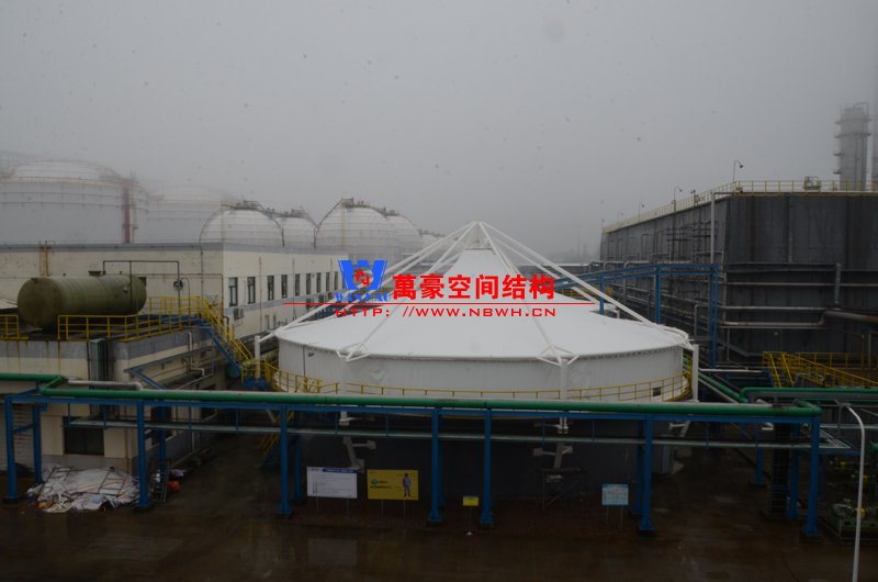平湖衛星石化污水廠膜結構加蓋密封系統工程項目膜結構展開面積2000平米,用鋼量35噸,由寧波萬豪空間結構工程有限公司承建。
